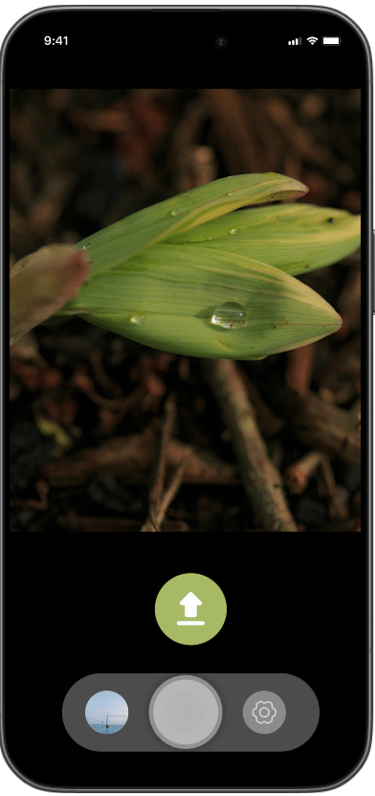 After taking the picture, screen with photo upload button