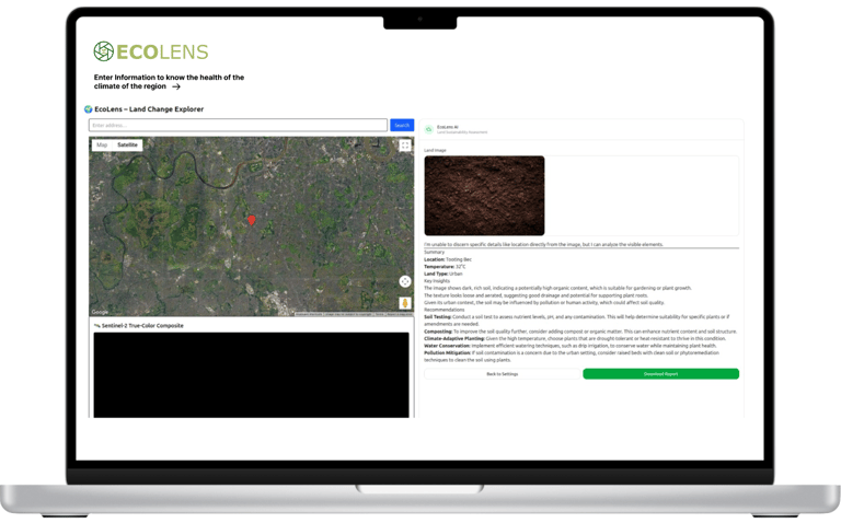 Our B2B SaaS application enables users to photograph environmental elements like soil, tag their location, and use AI to analyze historical data to assess the element's health in that region, supporting informed environmental monitoring, sustainable land management, precision agriculture, and data-driven environmental policy development.