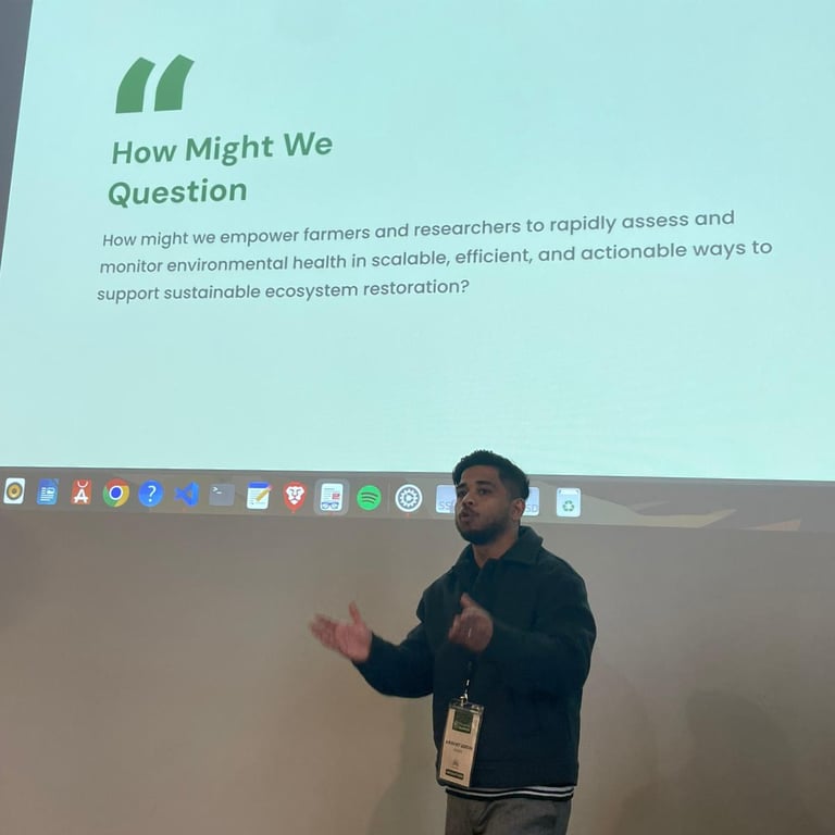 Despite the fast-paced nature of the hackathon, I on behalf of our team conducted interviews with a couple of farmers to gain firsthand insights into their challenges. These conversations provided valuable context around real-world pain points, such as difficulty in detecting early signs of soil or crop degradation, which grounded our problem definition in practical needs. Integrating this user feedback early in the process significantly enhanced our ideation, ensuring that our solution would be both relevant and impactful for those directly affected by environmental decline.