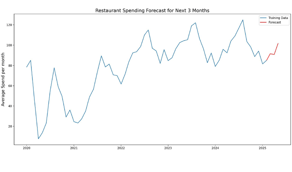 We highlighted where users spend the most—helping them spot habits they might not notice, like rising restaurant bills. Using machine learning, we predicted future spending, then set personalized savings goals—like trimming 15% from expected spend.