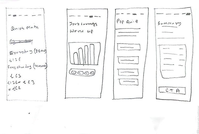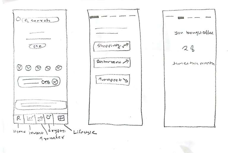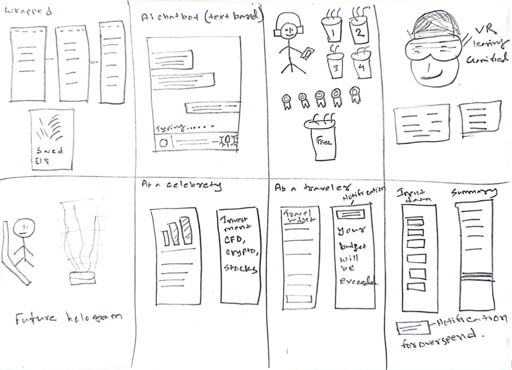 Right after coming up with the idea we started sketching our solution, we had 3 UX designers in the group we each came up with our sketches and then by exploring all of them we decided on to go with the below final sketches for the solution.