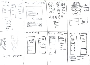 As a team, we decided to do some rapid ideation, keeping our persona, Ethan, in mind. Each person will come up with eight ideas in eight minutes. The following sketches are my ideas:
